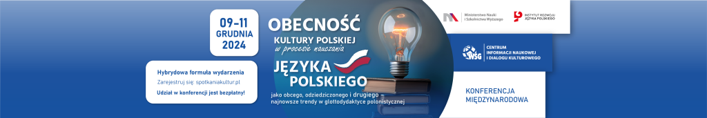 Tytuł konferencji: „Obecność kultury polskiej w procesie nauczania języka polskiego jako obcego, odziedziczonego i drugiego – najnowsze trendy w glottodydaktyce polonistycznej”.